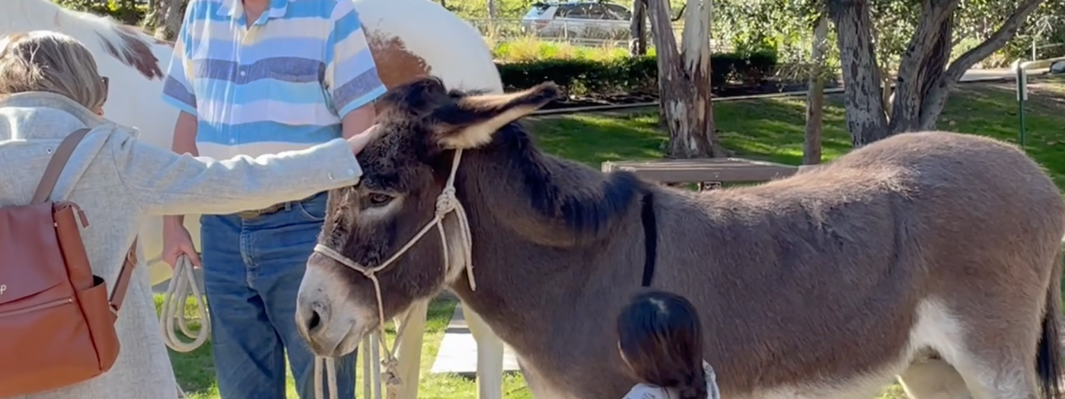 He pointed to the cross marking on the donkey’s back and told of how 2,000 years ago it was a donkey that Jesus chose to ride into Jerusalem. Jesus told his disciples to go into the nearby village and obtain a colt and its mother and to tell the owners of the donkeys that “The Master needs them.” (Matthew 21:3 / New American Bible)